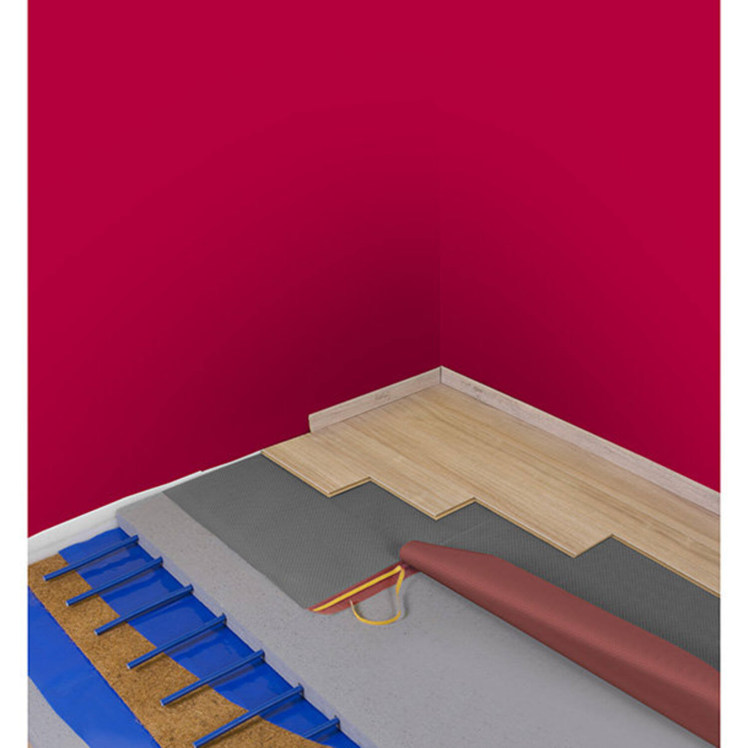 Bij vloerkoeling is condensbewaking noodzakelijk. De ondervloer biedt daarnaast uitstekende bescherming tegen vocht en hoge belasting.